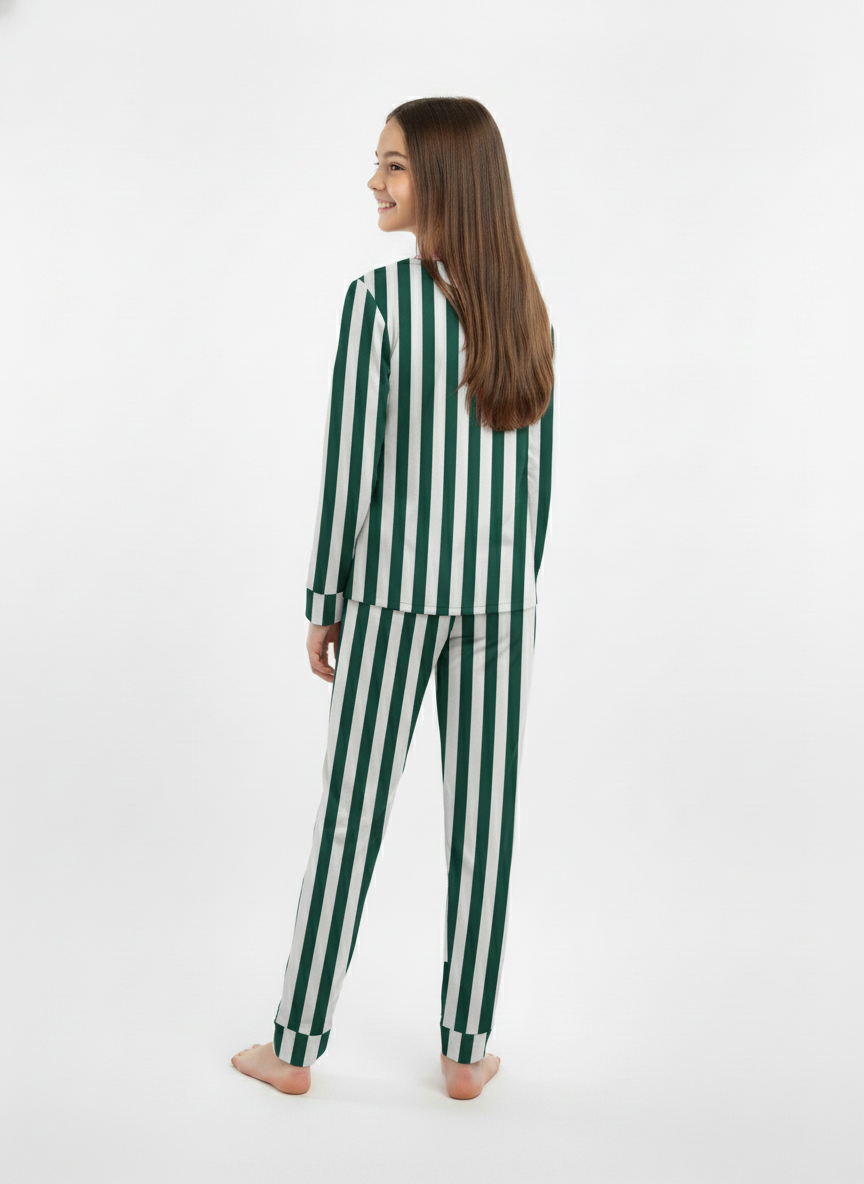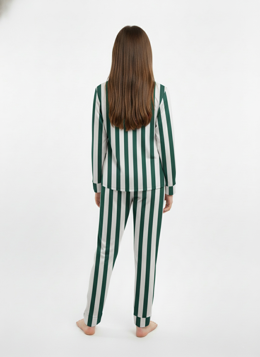 Green & White Striped Winter Night Suit β Soft & Stylish Sleepwear.